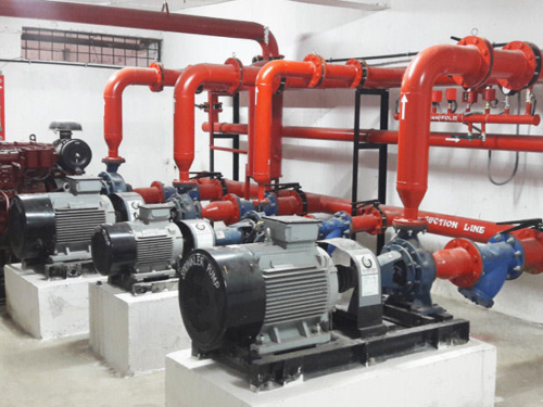 The Fire Pump Station comprises of the Jockey Pump, Electric Driven Pump and Stand-by Diesel driven Pump. The pump operation is automatic through pressure switch contacts based on header Pressure in the hydrant network. The delivery of the jockey ump and main pump is connected to the common delivery header.